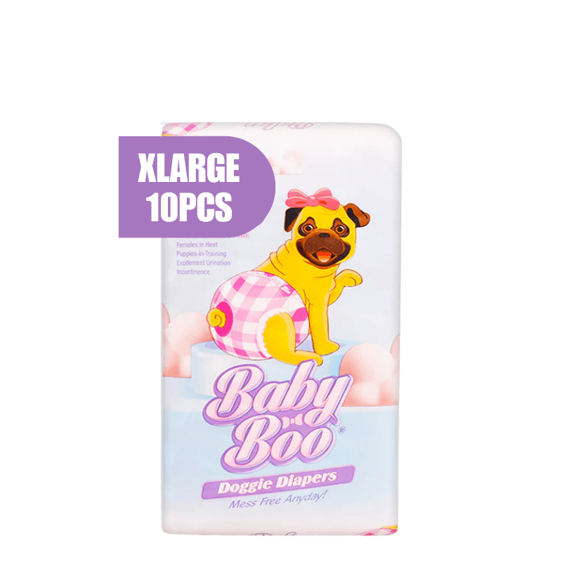 Sizes Available: Baby Boo Diapers come in various sizes, including XS, S, M, L, and XL, catering to different breeds and sizes of dogs. Each pack contains a different number of diapers depending on the size, ensuring you have enough for your needs.