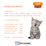 Tuna, Water, Beef, Gelling Agent, Taurine, FOS (Fructo-oligosaccharide), Sodium Nitrite, Vitamin B1.