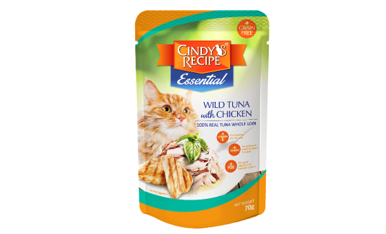 Cindy’s Recipe® Essential cat wet food provides a tempting taste adventure for your feline friend using only 100% human-grade tuna whole loin / fresh chicken with more meat content and a pleasing texture that will have her eagerly asking for more. It is enriched with supplements and specially formulated to meet the nutritional needs of all cat breeds at every life stages.