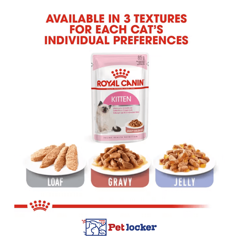 Giving your kitten the best start in life all begins with the right nutrition. Providing it with the essential nutrients it needs will properly support your kitten’s development and growth. ROYAL CANIN® Kitten in Gravy is specially formulated to support the nutritional needs of kittens in the “consolidation phase” of their growth. This formula is suitable for 4 to 12-month-old kittens as they undergo a period of significant physical and behavioural changes. ROYAL CANIN® Kitten is formulated with an adapted texture and aroma for growing kittens. This formula also helps support the development of the kitten’s healthy immune system with the inclusion of nutrients such as Vitamins E and C.