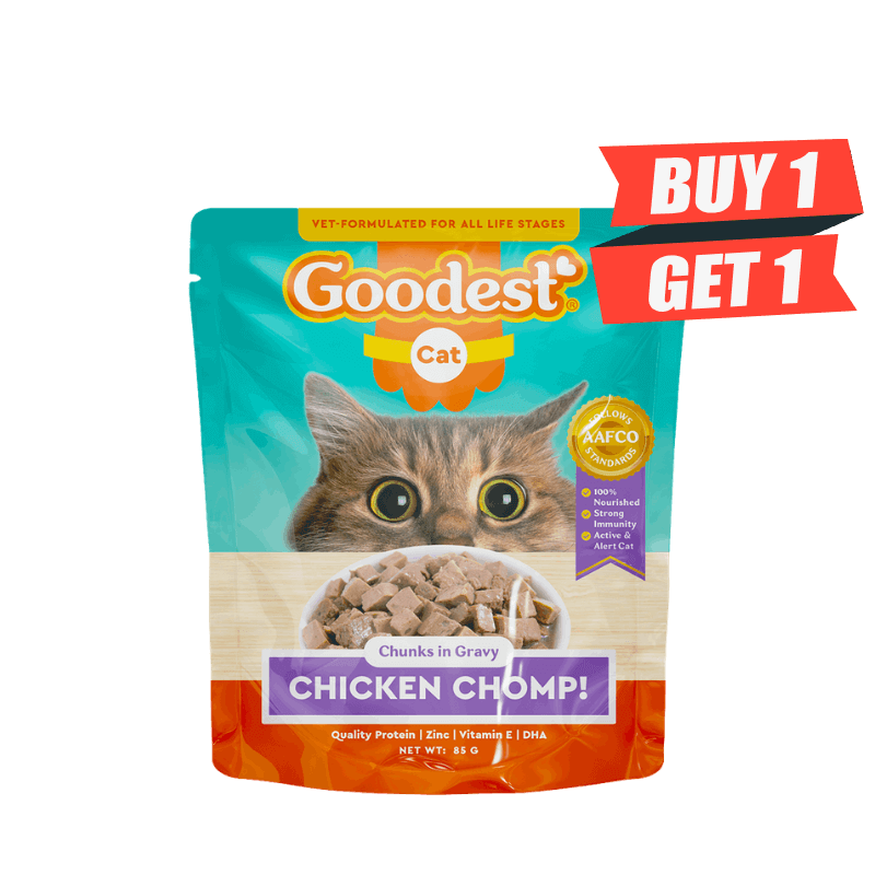 Water, Tuna, Chicken By Products, Chicken Meat, Beef Liver, Gravy, Wheat Gluten, Soybean Oil, Minerals, DHA, Vitamins, Colouring Agents.