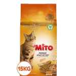 La Mito Chicken is a dry cat food formulated for adult cats, emphasizing balanced nutrition with a focus on animal protein. With dehydrated chicken as the primary ingredient, it provides 29% protein and 13% fat, supporting muscle maintenance and energy. This formula includes taurine for heart and eye health, and it also balances omega-3 and omega-6 fatty acids to support a healthy coat and skin.