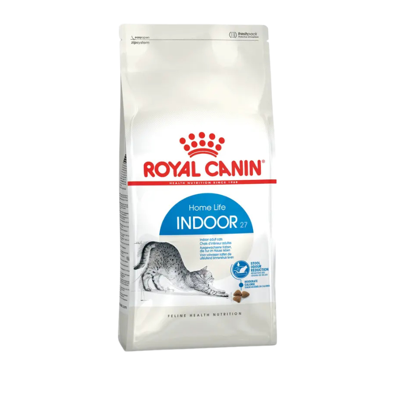 Indoor adult cats like yours tend to get less exercise than outdoor cats, that’s why a balanced and complete diet containing beneficial nutrients is important for optimal health.ROYAL CANIN® Indoor 27 contains a highly digestible protein (L.I.P.) that’s specifically selected for its very high digestibility. This protein also helps to reduce the quantity of your cat’s stool, as well as reducing the smelly stool odour that occurs when cats have a lower intestinal transit due to a lack of exercise.This food has a moderate fat content in order to ensure that your cat’s calorie intake is aligned with its level of activity – the calorie content also contributes to the maintenance of a healthy weight.It’s common for indoor cats to spend long periods of time grooming themselves. Thanks to the inclusion of specific dietary fibres, such as psyllium, this food also helps to stimulate the clearance of ingested hair – resulting in a significantly reduced amount of hairballs.Variations of ROYAL CANIN® Indoor dry food are also available depending on your cat’s lifestyle, appearance, and age: Indoor Appetite Control, Indoor Long Hair, and Indoor 7+.