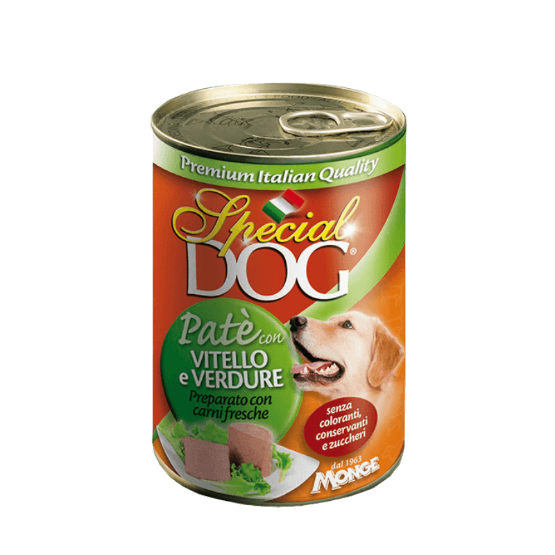 Special Dog Pate is premium Italian quality complete food for dogs prepared with fresh meat and without colorants, preservatives and sugars.
