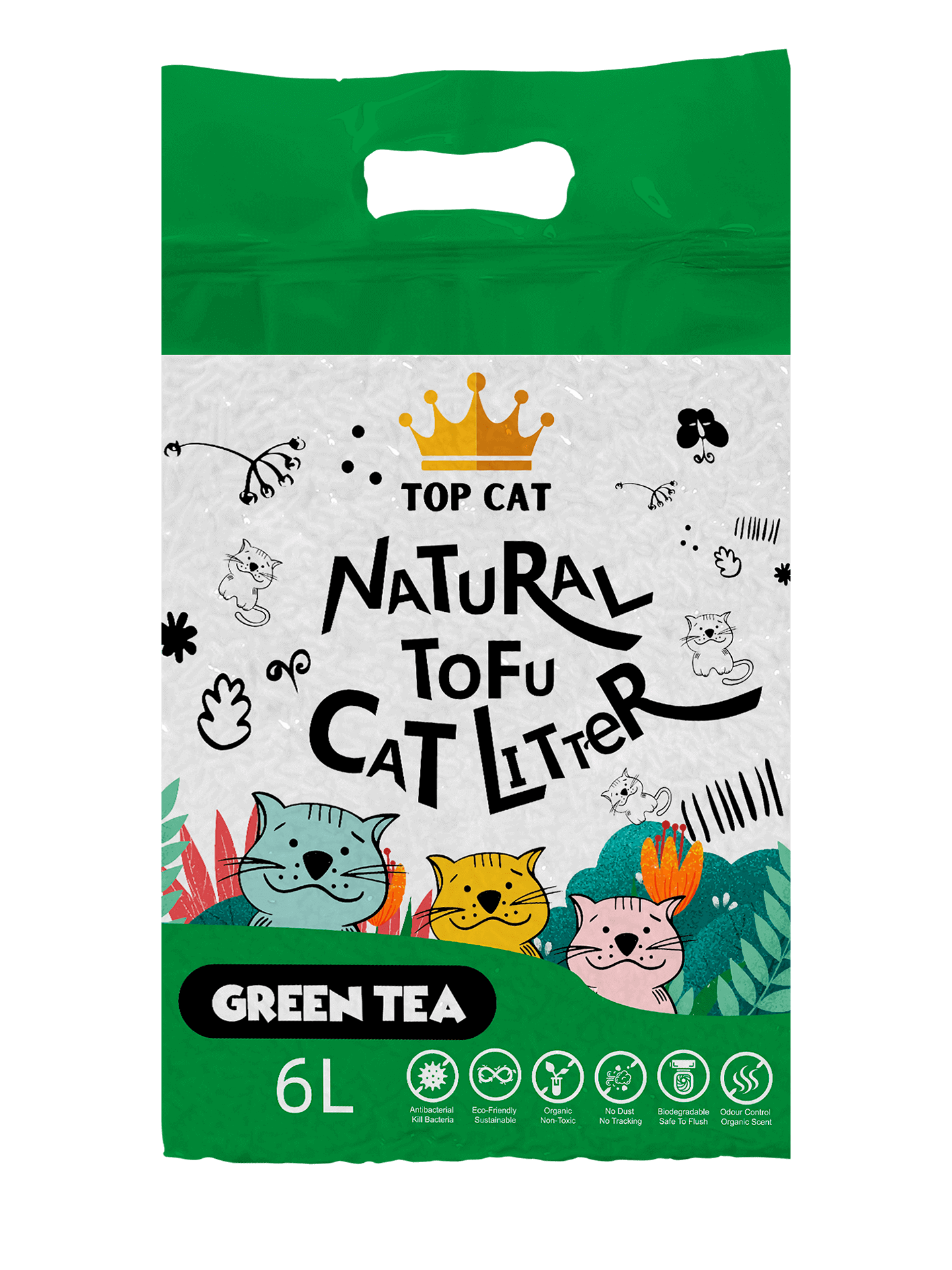 - Top Cat Tofu Cat Litter is an eco-friendly and biodegradable cat litter made from natural soybean fibers. This litter is designed to be highly absorbent, effectively controlling moisture and odor while being gentle on your cat’s paws.